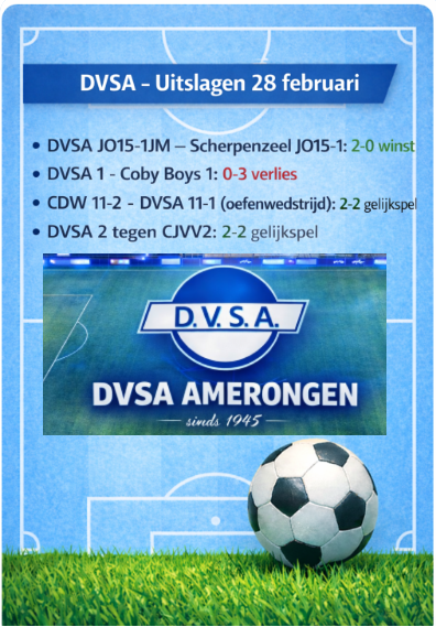 | 28 feb. | DVSA 2 | CJVV 7 | 2 - 2 | ||